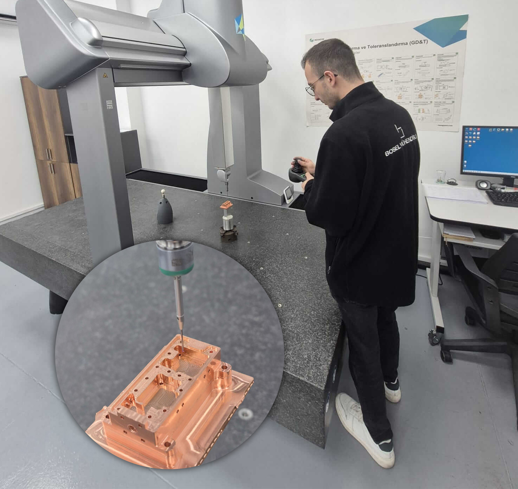 Kalite kontrol faaliyetleri, CMM Koordinat Ölçüm Cihazı başta olmak üzere hassas ölçüm ekipmanları ile gerçekleştirilmekte, her ürünün spesifikasyonlara uygunluğu titizlikle denetlenmektedir.